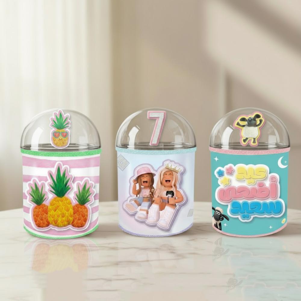 بالإمكان طلب تصميم العلبة بأي ثيم ترغبونه, مثال: (ثيم باربي, سبايدرمان, ثيم توزيعات مواليد و غيرها من المناسبات) فهذه العلبة مثالية لتوزيعها في العديد من المناسبات.