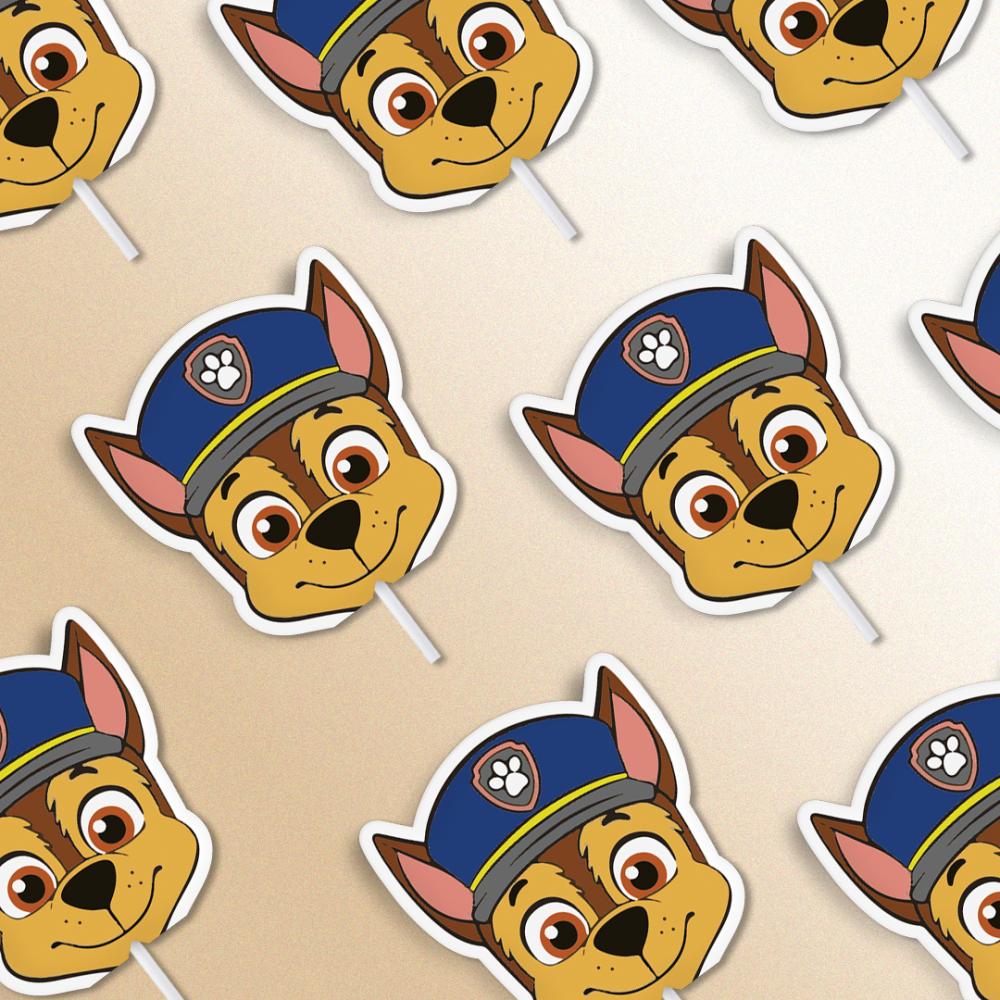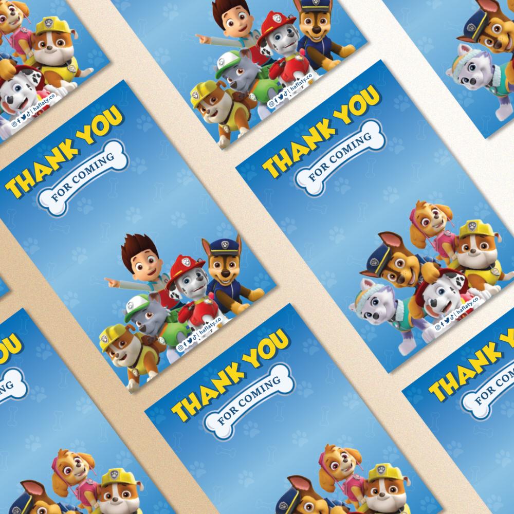 Design of Paw Patrol S theme distribution cards used to distribute heart lollipops.